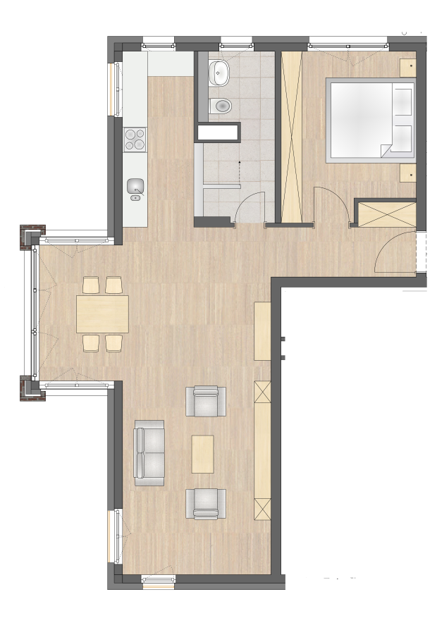 Die Wohnung ist - wie alle in unserer Anlage - nach Süden ausgerichtet.
