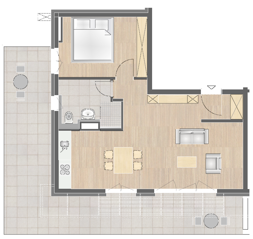 Die Wohnung ist - wie alle in unserer Anlage - nach Süden ausgerichtet.