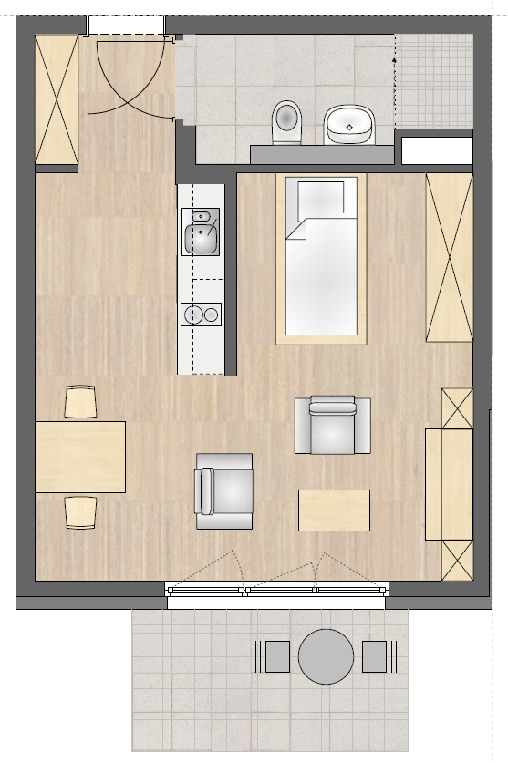 Die Wohnung ist - wie alle in unserer Anlage - nach Süden ausgerichtet.